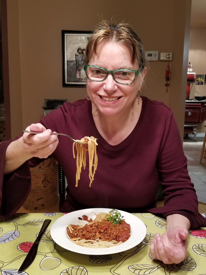 J’ai fait la sauce à spaghetti de Jean-Philippe.C’est la meilleure sauce que j’ai mangée! C’est vraiment un coup de coeur. Je l’ai faite avec de vrais légumes (pas ceux congelés comme il propose dans son vidéo). J’ai également utilisé des tomates en boîte de notre jardin. Un véritable délice!