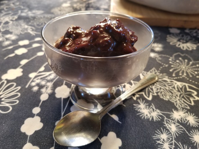 Une petite douceur ultra chocolatée…. Je n’ai pas mis de sucre blanc, j’ai mis 3/4 de tasse de cassonade.