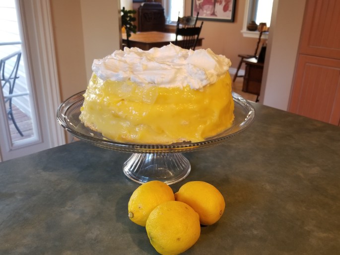 Voici le gâteau pour la fête des mères quelques jours en retard…. Le gâteau tarte au citron de Ricardo… C’est la première fois que je fais un gâteau des anges… Il faudra que je me perfectionne…. À défaut de ne pas être si beau, il est cependant très bon…