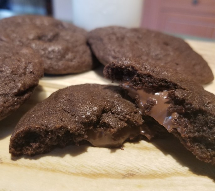 Alors, j’ai doublé la recette…. Cela m’a donné 28 biscuits et non 24. Pour les 4 derniers biscuits, j’ai tout simplement mis du nutella sans congélation au préalable…. C’était très bon.