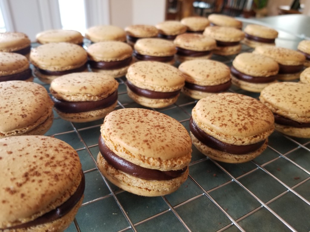 Mon fils ainé voulait des macarons… Voici la recette de Pierre Hermé que j’ai divisé en deux. C’est long à faire mais quelle douceur en bouche. Voici sa recette pour les coques.
