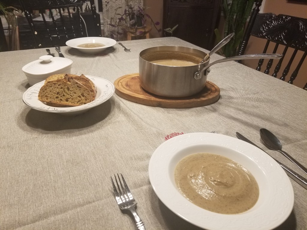 Aujourd’hui, mon chum a préparé une bonne soupe que nous avons dégustée avec une bonne amie…. Avec un bon pain, du jus aux betteraves, carottes et pommes…. Ça fait du bien!