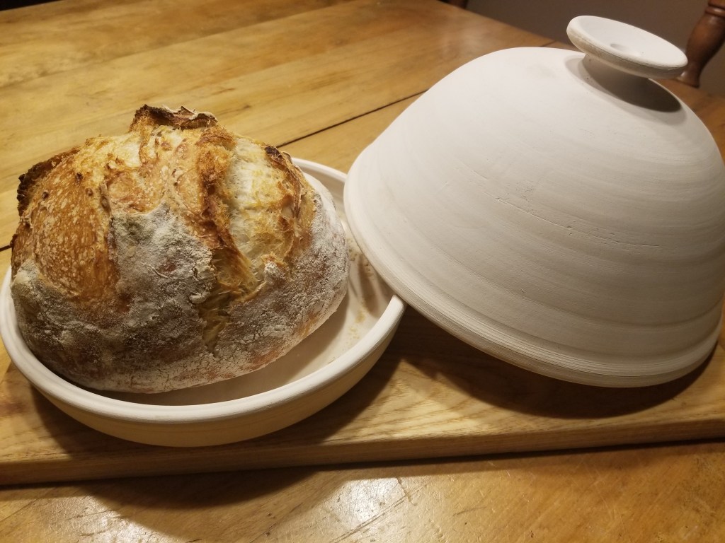 Je ne fais pas seulement du pain avec mon levain…. J’ai fait des crêpes, des gaufres… et voici une brioche. Il faut vraiment la faire cuire 45 minutes… Avec de la confiture, c’est un délice…